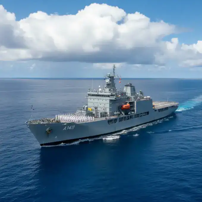 Frigate Captain Martin Kiesewetter has taken command of the German Navy's supply ship 'Berlin' from Frigate Captain Karsten Uwe Schlüter in Wilhelmshaven yesterday...