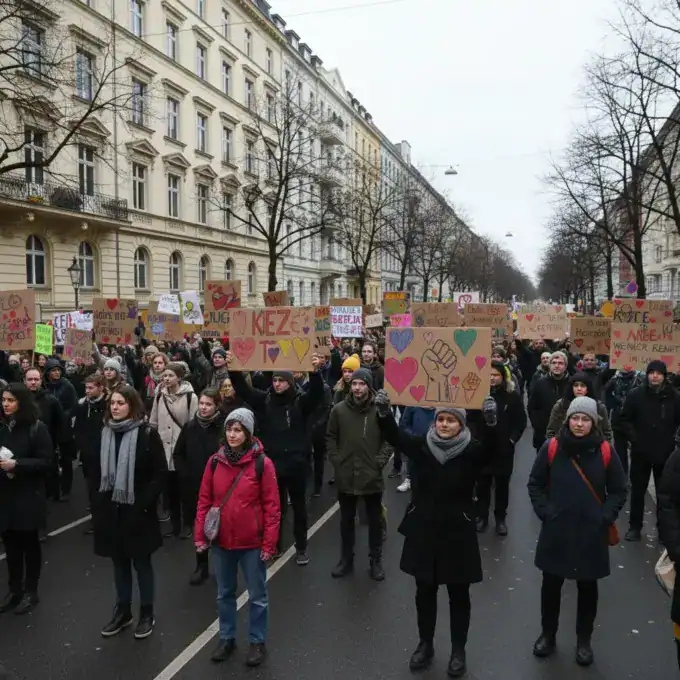In Berlin-Mitte, residents are protesting against tenant displacement after a building on Novalisstraße, home to a crucial DHL shop and long-standing tenants, was...
