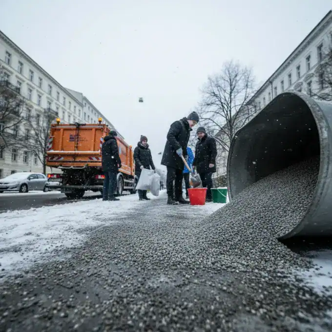 The Berlin municipal waste management company (BSR) is providing free grit to residents for private use on pavements and properties due to continuing...