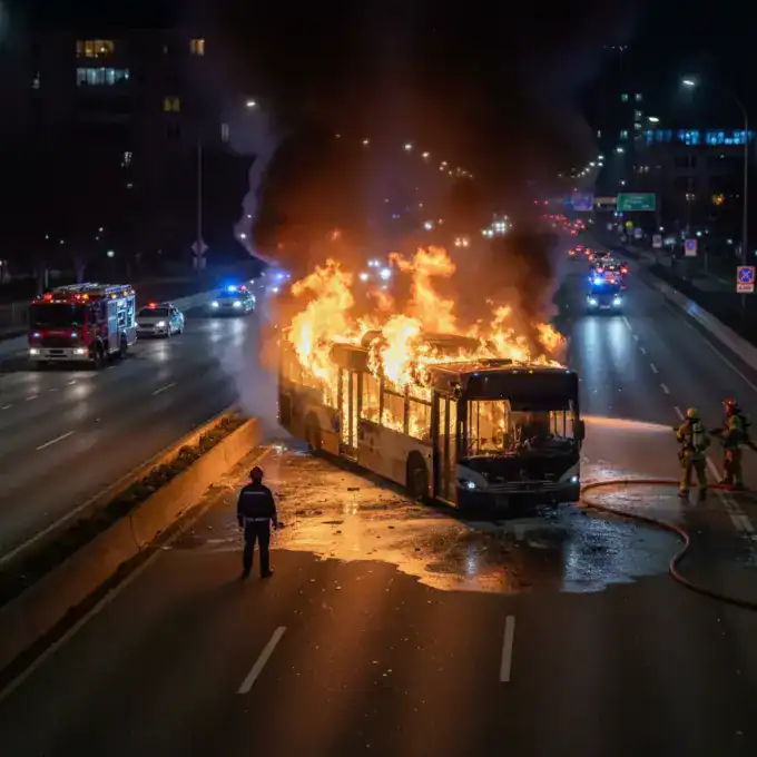 A public bus caught fire on the A103 motorway in Schöneberg, Berlin, yesterday evening. The driver managed to escape unharmed, and there were...
