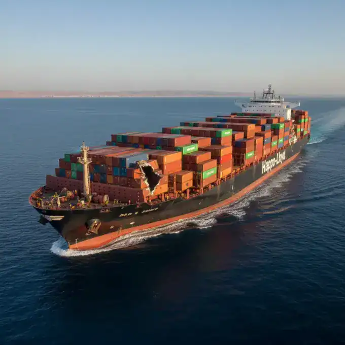 A Hapag-Lloyd container ship, the 'Source Blessing', was struck by projectile debris near the Strait of Hormuz on Thursday morning, resulting in a...