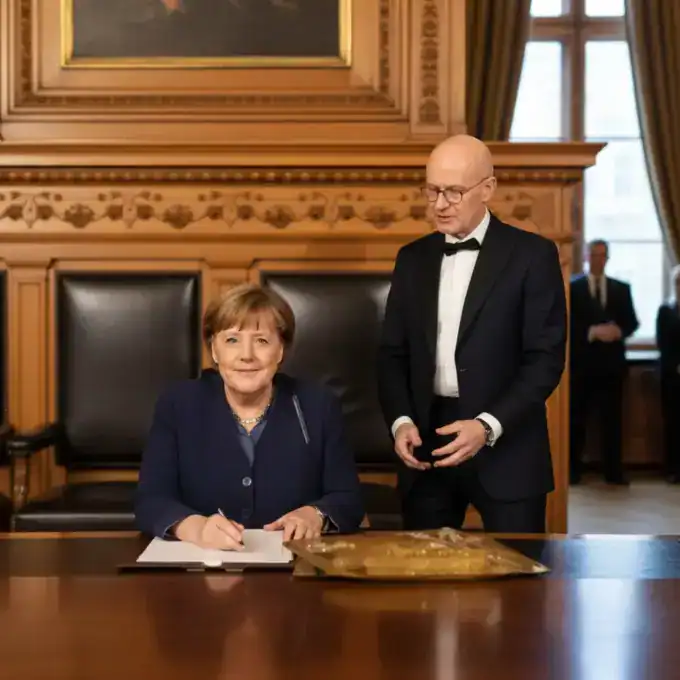 Former German Chancellor Angela Merkel and EU Council President António Costa were the guests of honor at the traditional Matthiae-Mahl in Hamburg on...