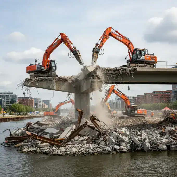The demolition of the northern section of the Berlinertordamm Bridge in eastern Hamburg commenced on Thursday evening, leading to extensive road and rail...