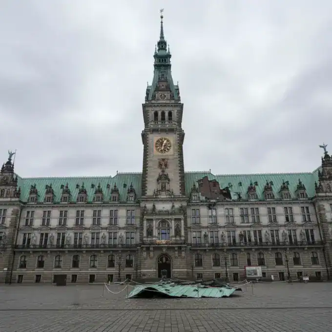 A copper part fell from the roof of Hamburg City Hall on Wednesday morning, plummeting 20 meters onto the pedestrian walkway. The fire...