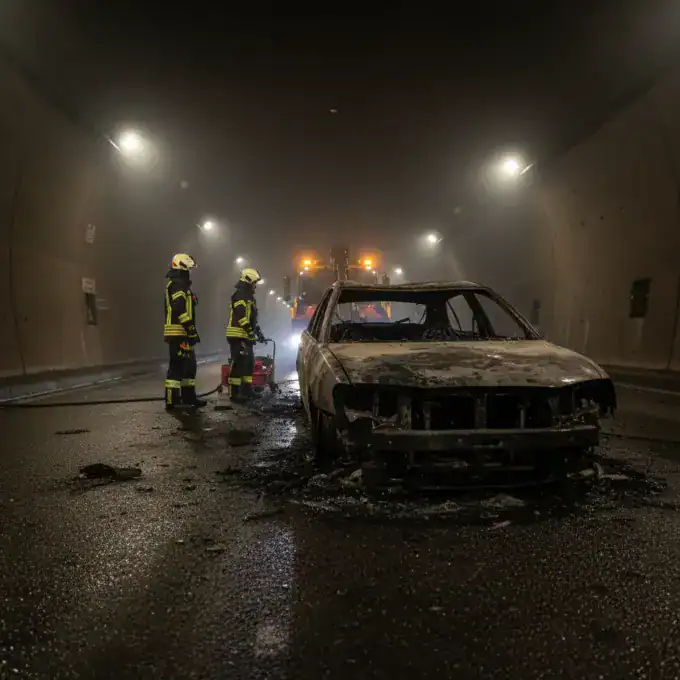 A car caught fire in the Innsbrucker Ring Tunnel in Munich during morning rush hour yesterday, March 9, 2026, injuring one person and...