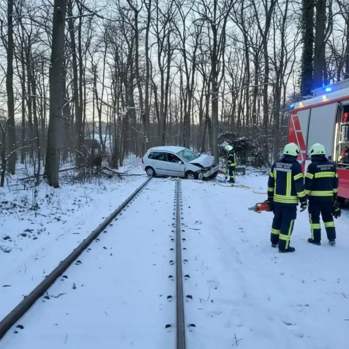 A blue Seat veered off Siemensallee in Obersendling, Munich, on Saturday morning, January 3, and became stuck in bushes just before the S-Bahn...