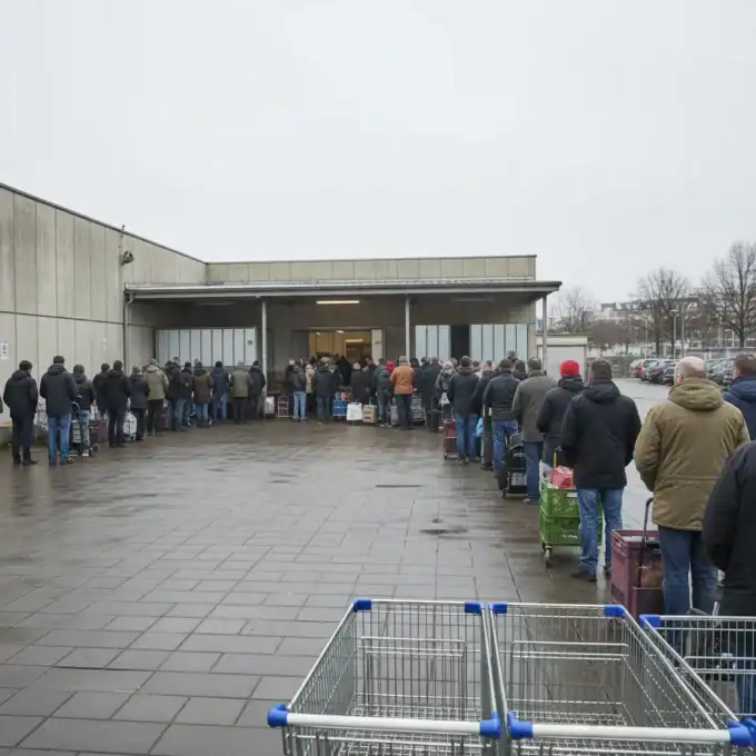 Hundreds of people, young and old, queue at the Munich Tafel's Großmarkt distribution point, seeking food and community just before Christmas. This report...