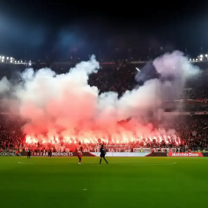 During the Champions League match between FC Bayern and Sporting Lisbon at the Allianz Arena on December 10, pyrotechnics set off by visiting...
