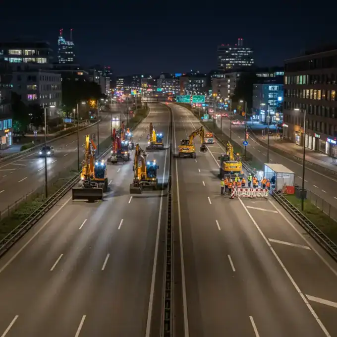 The A7 motorway in Hamburg is fully closed until Monday morning for construction work, which will be followed by a ver.di warning strike...
